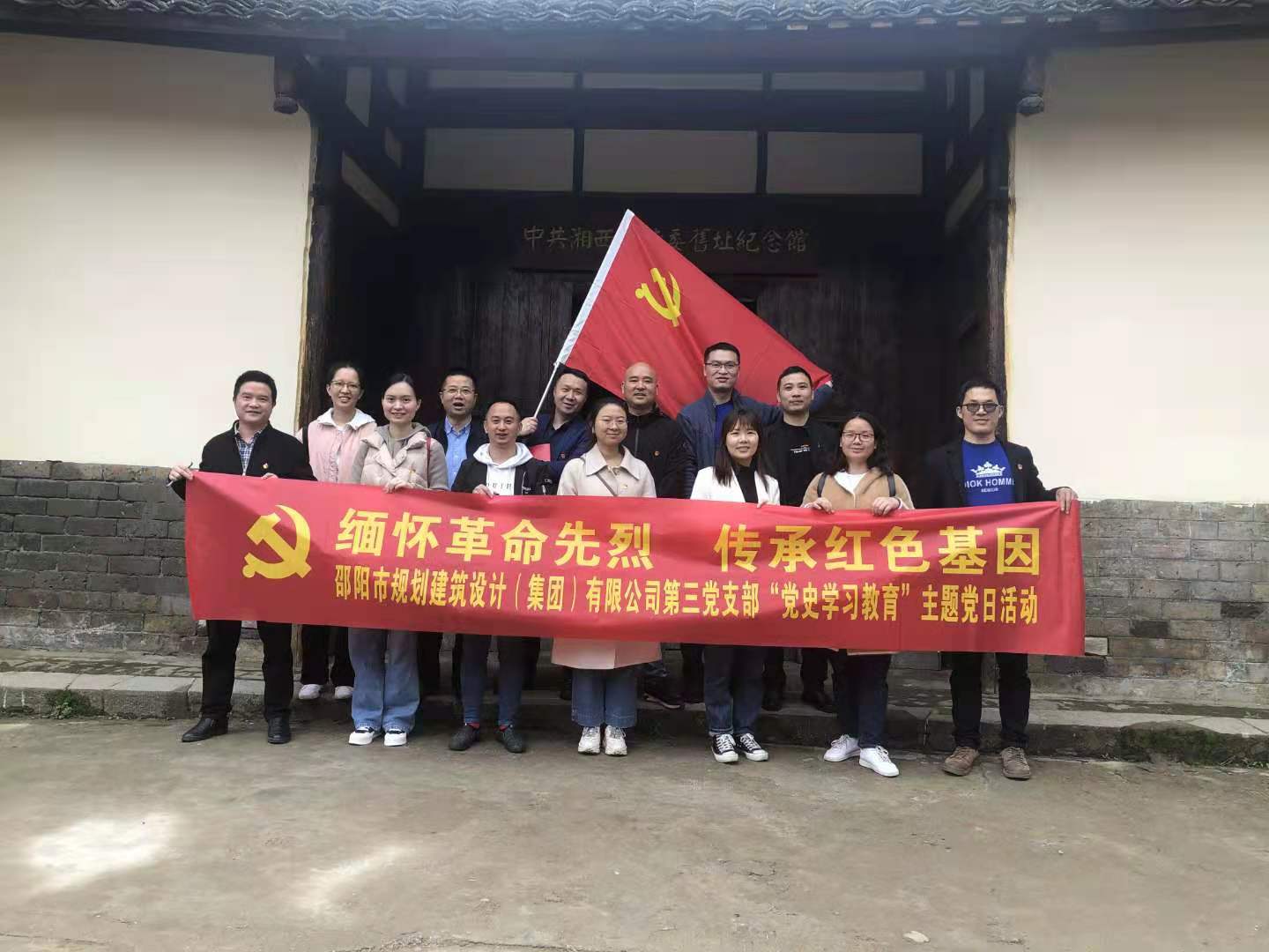 市規(guī)劃建筑設(shè)計(jì)(集團(tuán))有限公司黨委緊扣黨史學(xué)習(xí)教育主題,于4月25日、28日分別組織所屬5個(gè)黨支部到新邵縣中共湘西南特委舊址、雙清區(qū)八路軍駐湘辦事處舊址、武岡市革命歷史紀(jì)念館等紅色基地開展黨史學(xué)習(xí)教育主題黨日活動(dòng),重溫入黨誓詞,以實(shí)地研學(xué)的形式接受黨史教育。張志勇、龍建華、范志勇、李慶、范桂清等集團(tuán)公司領(lǐng)導(dǎo)參加上述活動(dòng)。